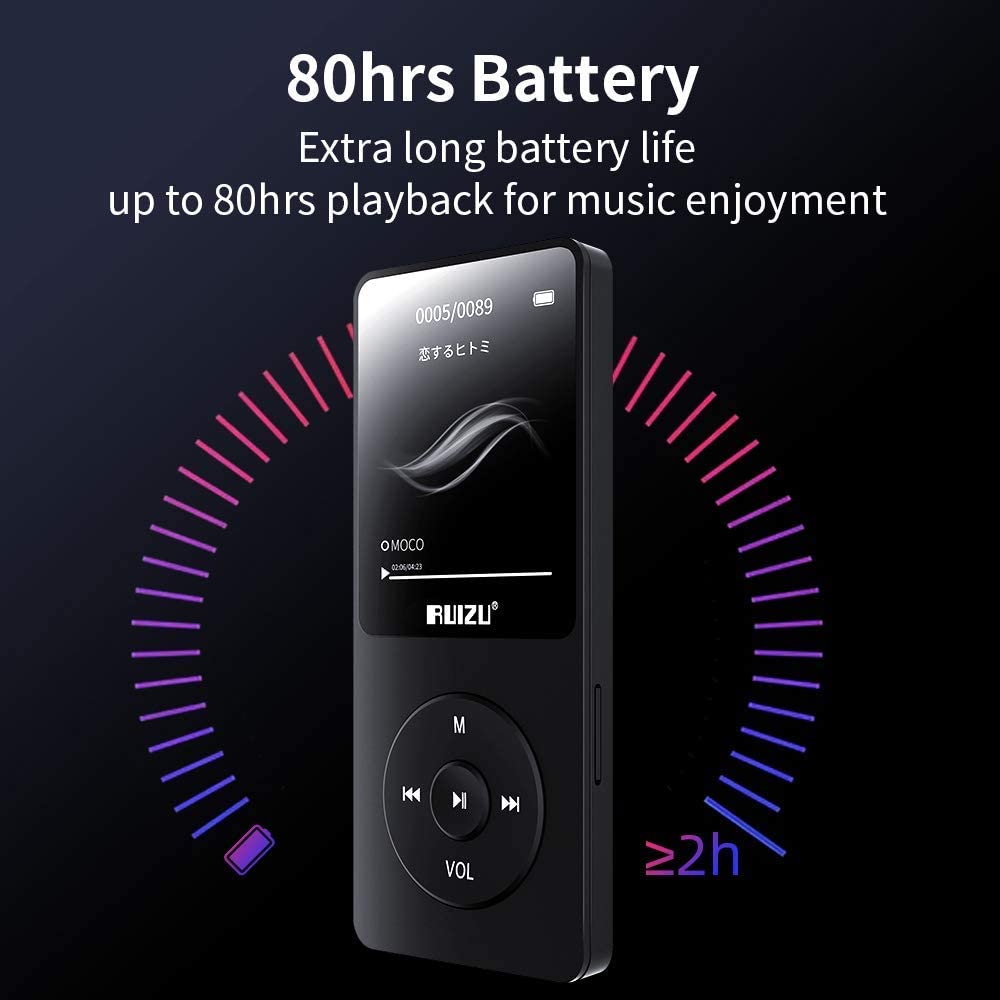 The RUIZU X02 supports multiple memory configurations and expandable storage, allowing users to store thousands of songs, audiobooks, and recordings.