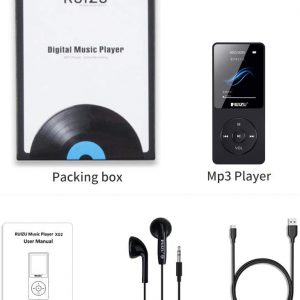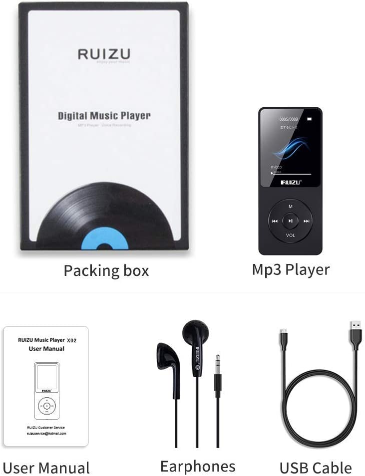 The RUIZU X02 portable MP3 player is a compact and reliable digital music player designed for everyday listening, sports, and travel. Featuring a 1.8-inch display, built-in FM radio, voice recorder, and support for multiple audio formats, this mini MP3 player provides a convenient way to enjoy music anytime and anywhere.
